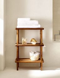 ساختار سه طبقه امکان چیدمان مرتب حوله‌ها را فراهم می‌کند و پله‌های پایین‌تر معمولاً برای حوله‌های دستی کوچک‌تر یا لیف حمام مناسب هستند.